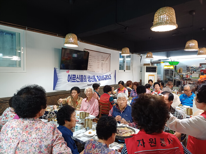 행사 당일 자원봉사회 회원 20여 명은 어르신과 함께 생신 축하 노래를 부르며 인사를 건넸다. 특히, 어르신 한 분 한 분의 근황을 살피며 건강 상태를 확인하는 등 따뜻한 마음을 나누었다.