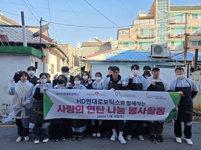 봉사에 참여한 HD현대로보틱스 관계자는 “임직원들이 같은 마음으로 현장에 나와 연탄 한 장 한 장에 온기를 담았다. 앞으로도 성남 지역사회와 함께할 수 있는 봉사활동이 있다면 적극적으로 참여하겠다”고 말했다.