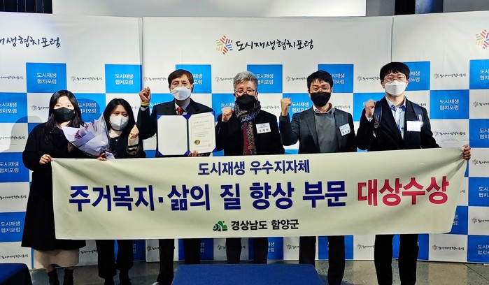 이번 한마당 행사에서 함양군은 16일 부대행사로 진행된 도시재생 협치포럼에 참석, ‘주거복지·삶의 질 향상’ 부문 우수 지자체 대상을 수상하는 영예를 안았다.