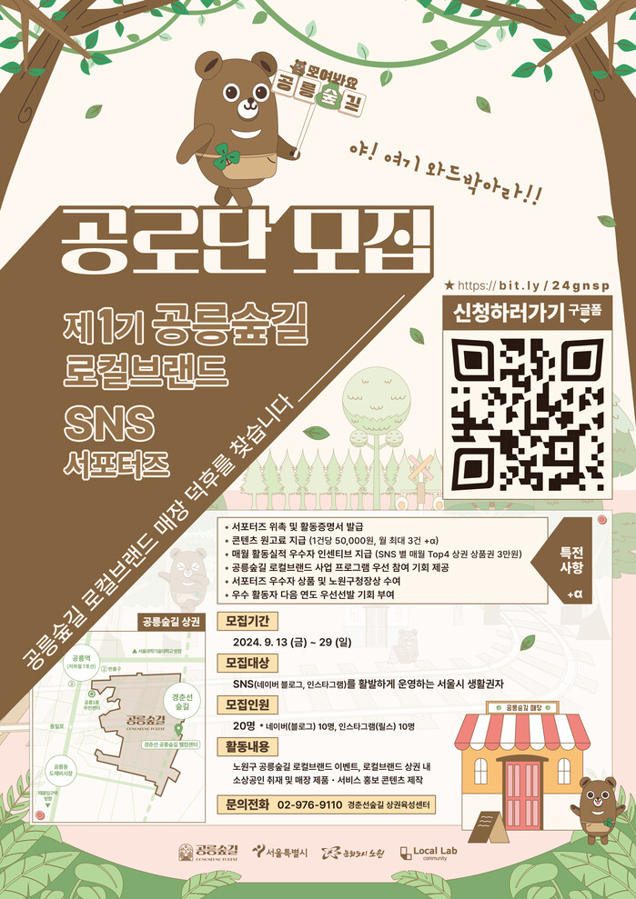 [시민일보 = 박소진 기자] 서울 노원구(구청장 오승록)가 오는 29일까지 ‘경춘선 공릉숲길 로컬브랜드 SNS서포터즈’를 모집한다고 20일 밝혔다.