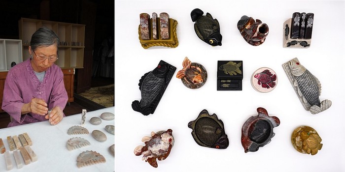 개인전 문화재청장상을 수상한 김육남 작가의 ‘물길 따라 온 여행’은 해남 특산품인 연옥의 천연색이 돋보이는 옥공예 작품이다. 부귀를 상징하는 잉어와 금붕어를 주제로 그림이나 서예 소품, 장식용으로 활용할 수 있도록 제작된 섬세한 옥공예품이 예술미와 실용미에서 높은 점수를 받았다.