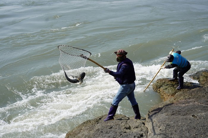 울돌목이 위치한 해남 우수영 관광지에서도 뜰채 숭어 잡이가 시작됐다.