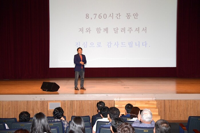 강 시장은 “지난 1년 열심히 달려와 주셔서 감사하다. 무엇보다 큰 성과는 저와 여러분이 신뢰를 쌓고 친해진 것”이라며 “깊숙한 대화를 나눌 수 있었던 시간이 무엇보다 좋았고 이 점이 제가 앞으로 시정을 이끌어가는 큰 힘이다”고 말했다.