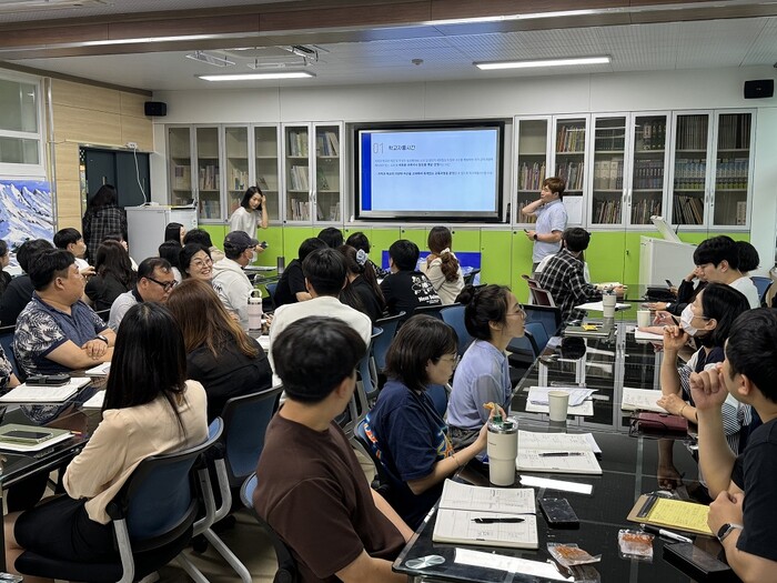 [해남=정찬남 기자] 전라남도해남교육지원청(교육장 이자영)은 지난 9일(화) 해남동초에서 60여 명의 교사가 참여한 가운데 1학기 마지막 ‘2024. 해남 미래혁신학교 네트워크 찾아가는 학교 자율교육과정(시간) 함께 만들기 실행연수’를 실시했다.