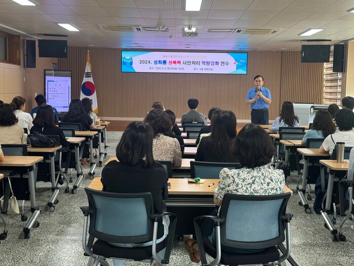 최근 딥페이크나 휴대전화를 통해 성적 언어표현이나 성적 비하 발언이 여과 없이 전달되고 있으며, 성희롱・성폭력 사건 및 2차 피해 사건으로 보호받아야 할 피해자의 인권이 침해되고 있는 상황이 급증함에 따라 이번 연수는 학교 역할 정립, 업무 담당자 역량 강화를 통해 안전하고 건강한 학교문화 조성이라는 목표에 주안점을 두고 진행되었다.
