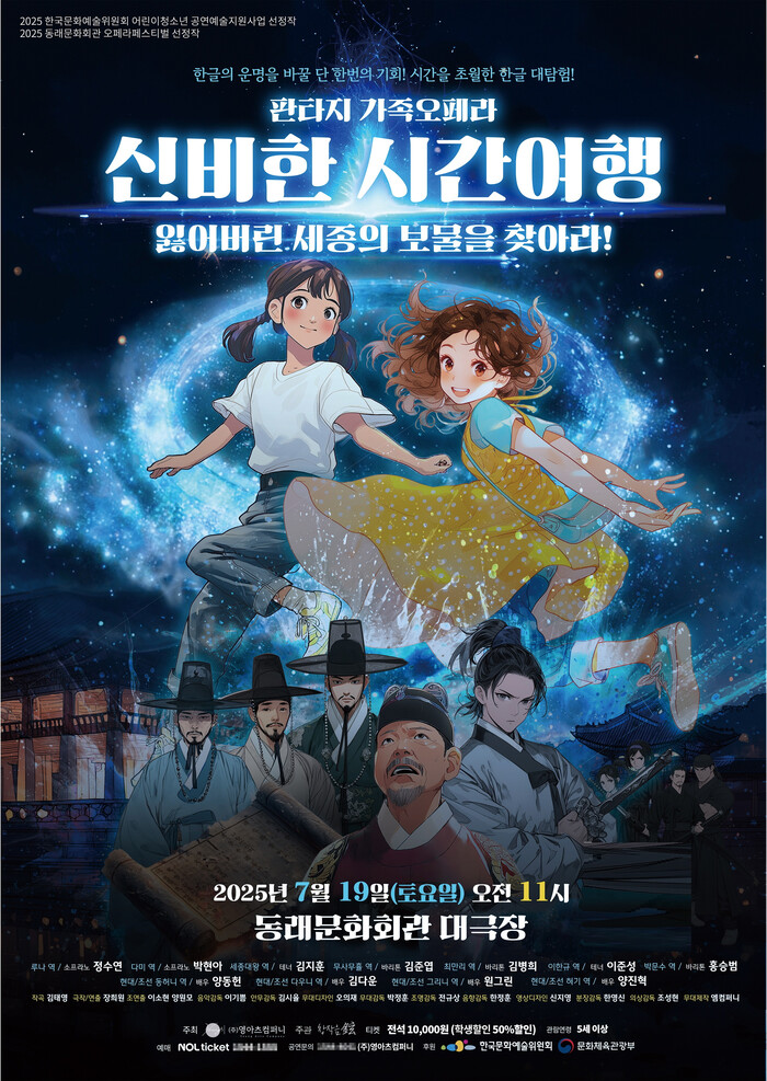 영아츠컴퍼니가 제작한 창작 오페라인 판타지 가족 오페라 <신비한 시간여행>은 한글 창제의 숨겨진 이야기와 현대 아이들의 모험을 한 편의 환상적인 판타지 오페라로 선보인다.