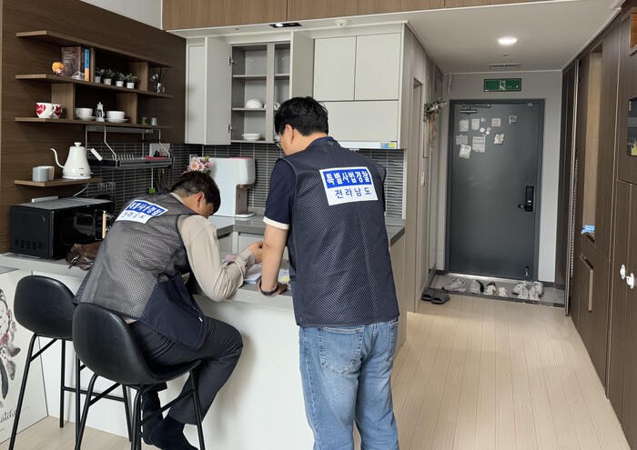 특히 숙박 중계플랫폼을 통해 전남 100여곳을 모니터링하고, 이용자 댓글 등을 분석해 불법이 의심스러운 아파트 2곳, 오피스텔 3곳, 주택 1곳을 특정해 전남도 식품의약과와 합동으로 진행했다.