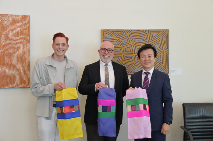 먼저 조규일 진주시장은 호주 국립박물관(National Museum of Australia)를 방문하여 ‘마이클 쿡’ 박물관 진흥 및 관람객 참여 담당 부국장과 ‘크레이그 미들턴’ 디지털 혁신 및 전략 수석 큐레이터와 면담을 가졌다. 이번 면담에서 ‘한류(HALLYU)’ 관련 전시에 진주 실크등(燈)을 접목하는 것에 대해 협의했다.