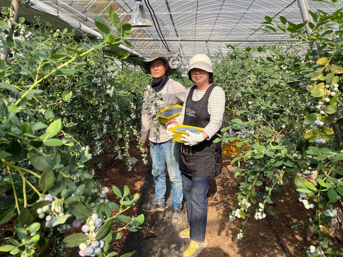 | ▲ 정민자 아주마 대표와 블루베리 농장주. (사진=쿠팡 제공) |