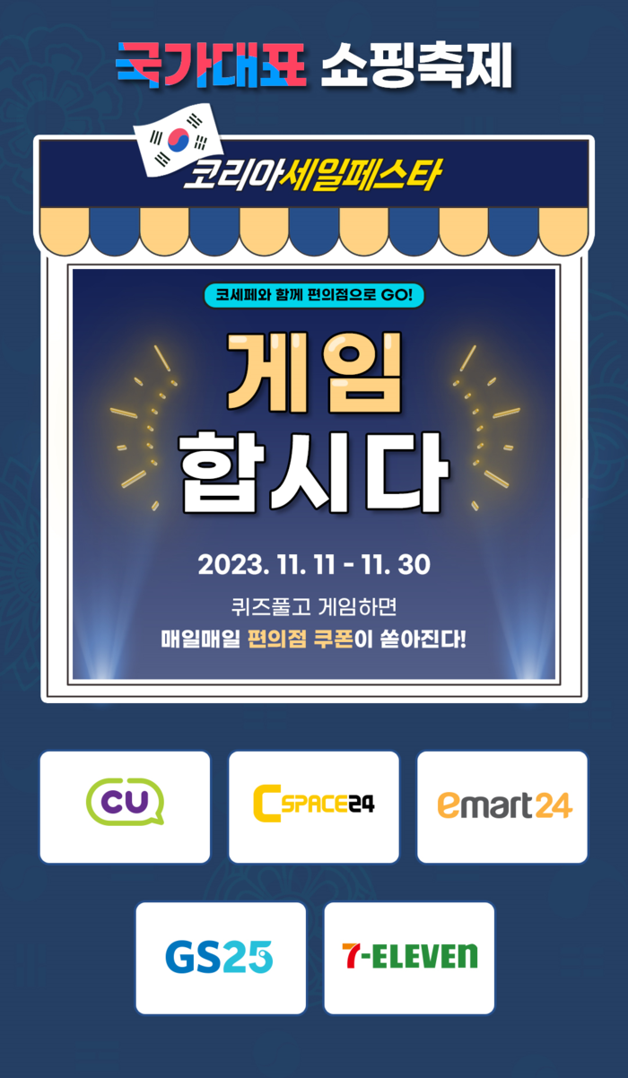 GS25, CU, 세븐일레븐, 이마트24, 씨스페이스 24 등 5개 편의점은 코세페에 참여해 다양한 할인 혜택과 게임 이벤트를 제공하고 있다. 소비자들은 코세페 홈페이지와 각 사 모바일 앱에서 퀴즈의 정답을 맞히면 편의점에서 사용할 수 있는 쿠폰을 받을 수 있다. 매일 새로운 퀴즈가 진행되며 1일 1회 참여할 수 있다. 또한, 편의점에 부착된 홍보물 QR코드로 게임 페이지에 접속하여 휴대폰 미니게임을 통해 일정한 점수 이상을 획득하면 이벤트 경품을 받을 수 있다.