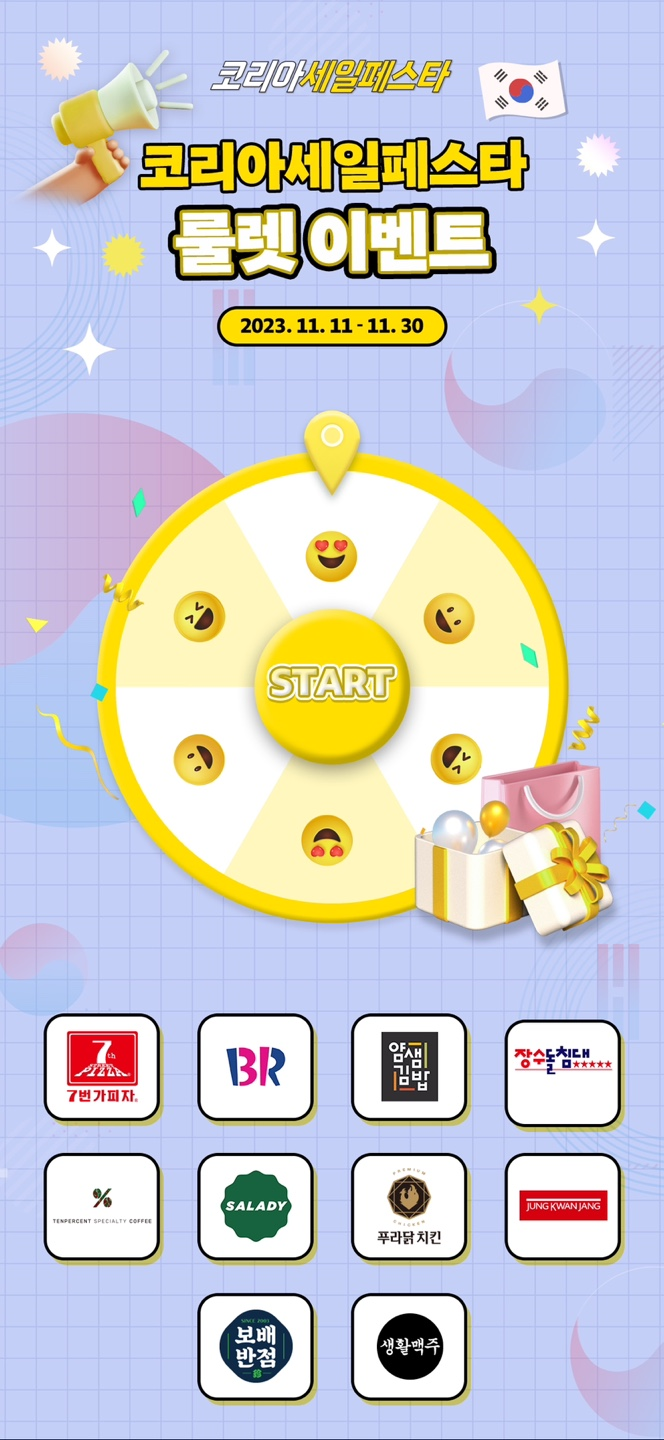 프랜차이즈 10개 브랜드…. 룰렛 이벤트 통해 경품 제공