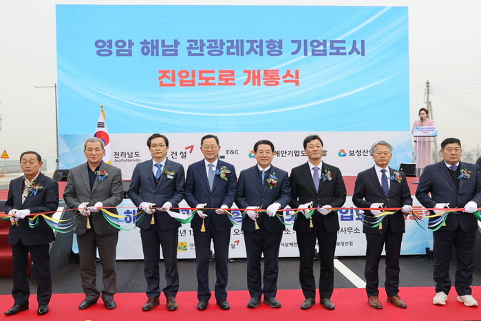 영암ㆍ해남 관광레저형 기업도시 진입도로는 해남군 산이면 대진리에서 영암군 삼호읍 서호교차로(IC)을 연결하는 총연장 12.19㎞, 4차로 신설 도로로, 총사업비 3155억원이 투입돼 2015년 12월 착공, 이달 8일 준공되기까지 7년이 소요됐다.