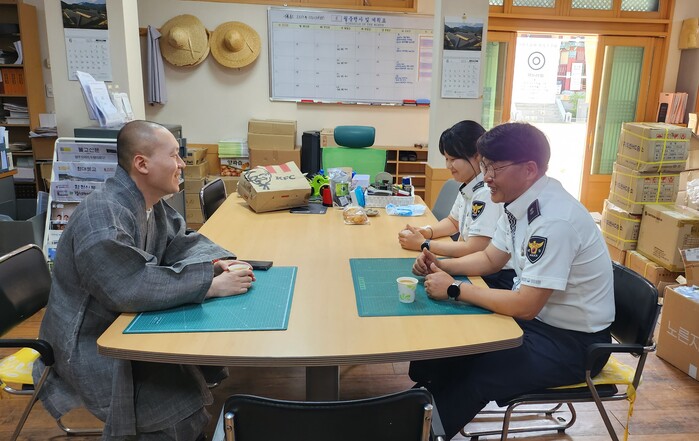 이날 간담회에는 사찰 내 차량 등 추락 고위험 구간 안전 펜스와 반사경 등 교통안전시설물 등을 점검하고 사찰 내 교통 사망사고 예방을 위한 시설 개선 등을 논의하였다.