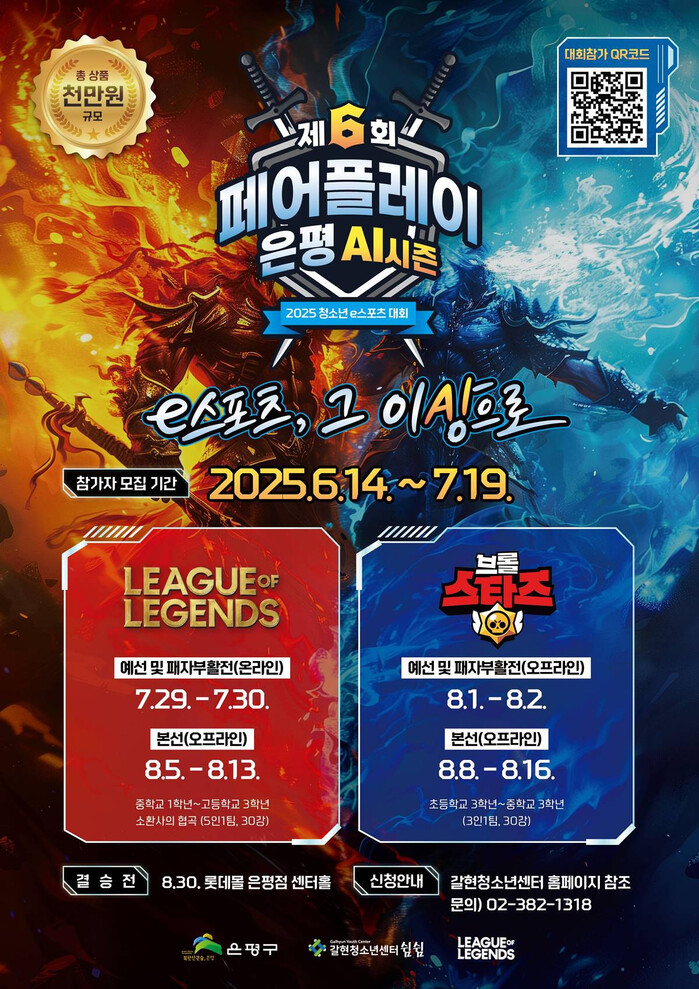 올해로 6회째를 맞은 ‘은평구 청소년 e-스포츠 대회-페어플레이 은평’은 페어플레이를 주제로 공정한 경쟁과 올바른 e-스포츠 문화를 만들어 나가기 위한 행사다. 올해부터는 인공지능(AI)을 활용한 전략기획서, 페어플레이 문구 작성 등 다양한 콘텐츠를 통해 청소년 디지털 역량 개발에 도움을 주고자 한다.