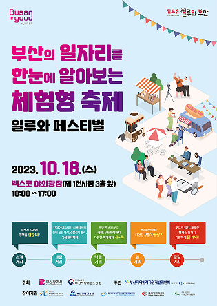 [부산=최성일 기자] 부산상공회의소(회장 장인화)가 운영하는 부산지역인적자원개발위원회(이하 부산인자위)는 10월 18일(수) 오전 10시 벡스코 야외광장에서 체험형 일자리정보 축제‘2023년 일루와 페스티벌’을 개최한다.