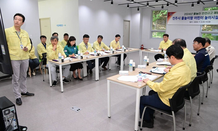 이후 물놀이시설 가동이 시작된 7월에는 차석호 진주시 부시장을 주재로 진주소방서, 전기안전공사와 합동으로 진양호공원 꿈키움동산 물놀이시설 현장점검을 실시하였으며, 안전관리 브리핑을 통해 어린이 안전사고 대응 방안을 논의하였다.