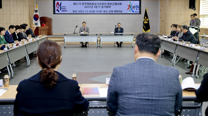 [합천=이영수 기자] 민주평화통일자문회의 합천군협의회는 최근 합천군청 3층 대회의실에서 안옥원 협의회장 및 자문위원 등 40여명이 참석한 가운데 2023년 4분기 정기회의를 개최했다.