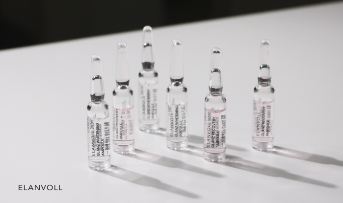 미백 앰플 '글란츠 화이트닝 솔루션 키트'는 알바수련꽃, 레몬머틀잎, 사과 추출물을 복합으로 함유한 MELAWAY™원료가 포함되어 피부의 톤과 탄력 개선에 도움을 준다.