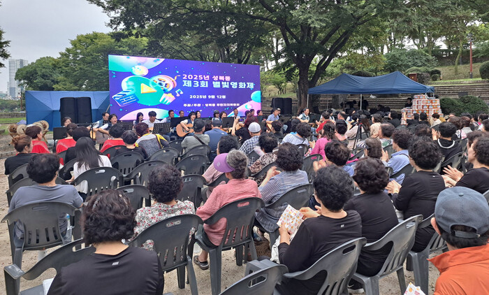 진주시 성북동 주민자치위원회(위원장 강지흥)는 12일 오후 6시 진주성 내 국립진주박물관 앞 광장에서‘제3회 성북동 별빛영화제’를 성황리에 개최했다.