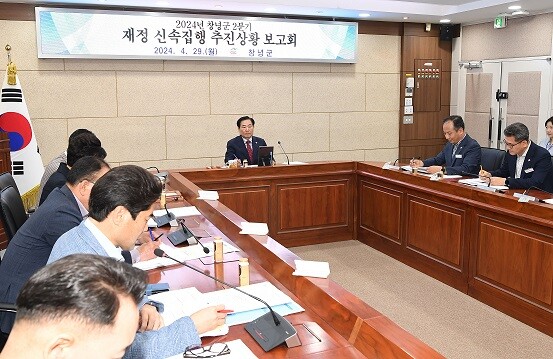 지난 29일 군정 회의실에서 성낙인 군수를 주재로 부군수와 국장 등 30여 명이 참석한 가운데 ‘2분기 재정 신속집행 보고회’를 개최했다.