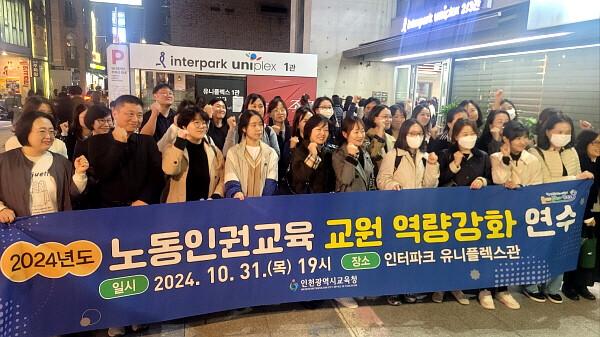 [인천=김형만 기자] 인천시교육청은 10월 31일, 관내 초·중·고·특수학교 교원 45명을 대상으로 ‘2024 노동인권교육 교원 역량 강화 연수’를 실시했다.
