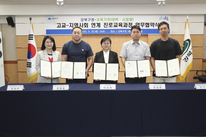 [시민일보 = 홍덕표 기자] 서울 강북구(구청장 이순희)는 최근 구청 기획상황실에서 '고교-지역사회 연계 진로교육과정' 추진을 위한 구와 교육기관(대학·사업체) 간 업무협약식을 개최했다고 29일 밝혔다.