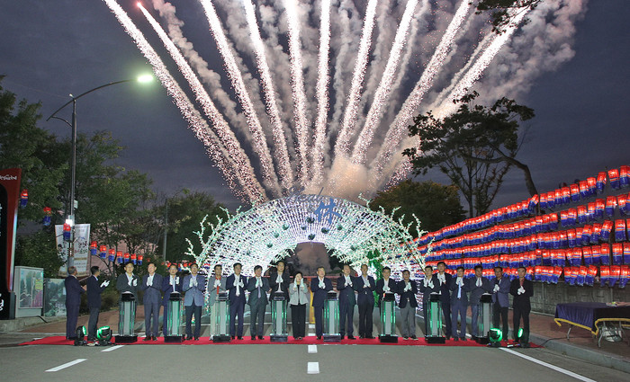 지난 28일 오후 산청IC축제광장 입구 ‘Hea & 休 약초터널’에서 열린 점등식에는 이승화 산청군수, 정명순 산청군의회 의장을 비롯한 유관기관 단체장 등이 참석했다.