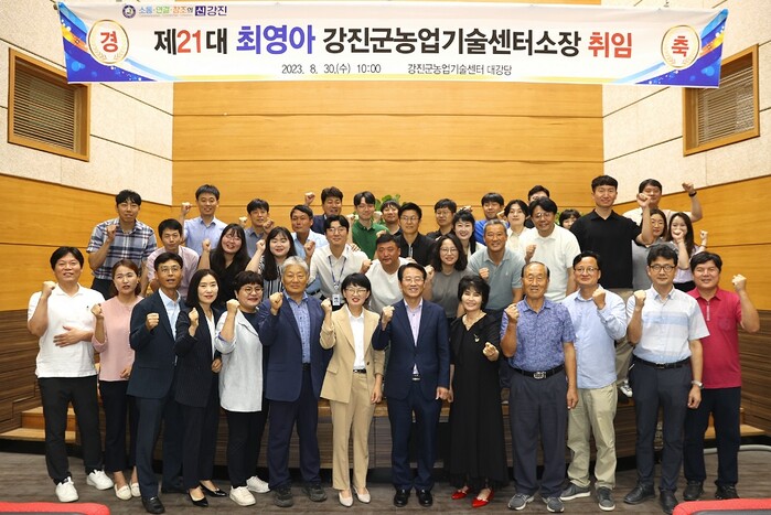 강진군농업기술센터는 이날 농업인 학습단체 회원, 품목별 농업인 연구회원, 소속직원 등 100여 명이 참석한 가운데 제21대 최영아 신임 소장 취임식을 가졌다.