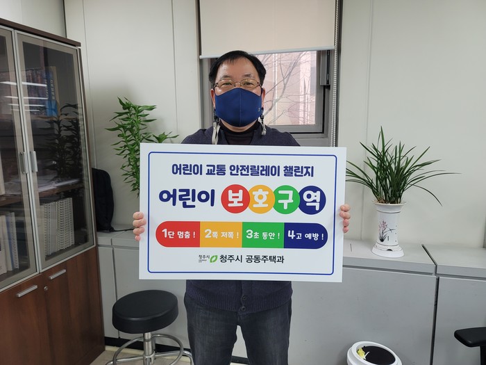 청주시 김영태 공동주택과장이 지난 10일 ‘어린이 교통안전 릴레이 챌린지’에 동참했다.
