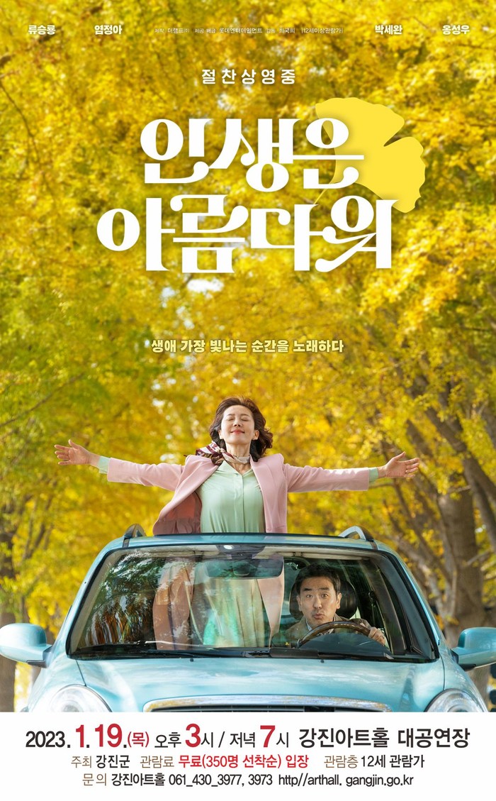 | ▲ 류승용, 염정화 출연 '인생은 아름다워' 영화 포스터 / 강진군 제공 |