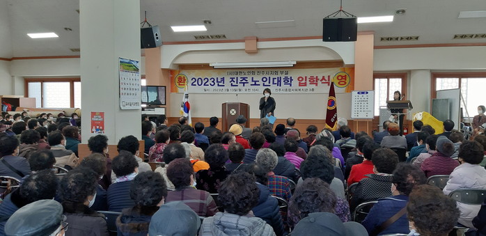 진주노인대학(학장 심동섭)은 13일 오전 11시 진주시종합사회복지관 대강당에서 어르신 500여 명이 참석한 가운데 입학식을 개최하고 활기찬 배움 활동을 시작했다.