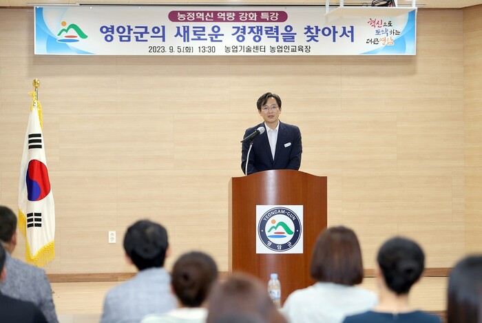 [영암=정찬남 기자] 전남 영암군(군수 우승희)이 지난 5일 영암군농업기술센터에서 ‘영암군 농업의 새로운 경쟁력을 찾아서’라는 주제로 4차산업혁명 등으로 변화하는 농업의 현재를 살피고, 영암군의 나아갈 방향을 모색하기 위해 ‘농정혁신 공직자 역량 강화 특강’을 진행했다.
