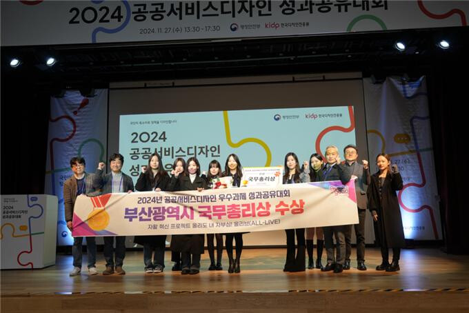 [부산=최성일 기자] 부산시(시장 박형준)는 어제(27일) 오후 1시 30분 정부세종청사에서 열린 행정안전부 「2024년 공공서비스디자인 성과공유대회」에서 시민과 함께 자활사업 정책을 디자인한 '부산시 자활 혁신 프로젝트 올리도 내 자부심, 올리브(ALL-LIVE)' 과제가 국무총리상을 수상했다고 밝혔다.