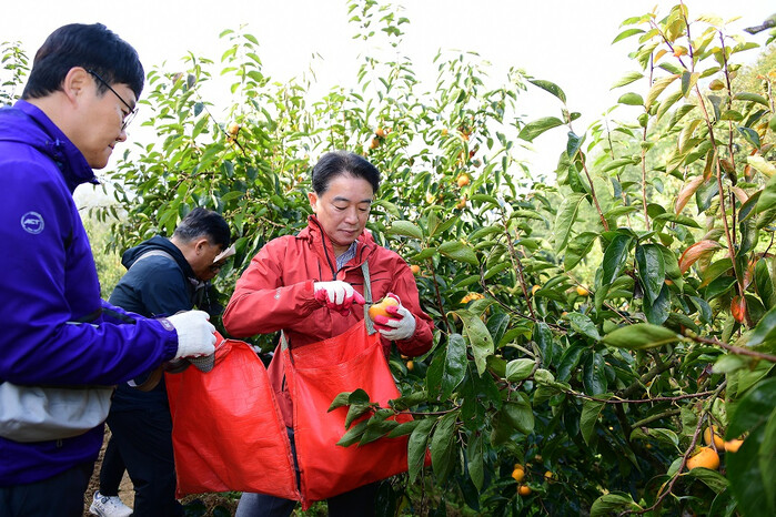 최학범 의장을 비롯한 의회사무처 직원 40여명은 김해시 생림면에 위치한 단감 농가를 찾아 떫은 감 선별과 내부 작업을 도우며, 현장에서 농민들이 겪는 고충과 노력을 이해하고 농산물의 소중함을 느껴보는 시간을 가졌다.