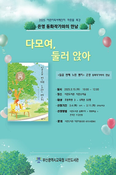 강의는 은영 작가와 도서‘일곱 번째 노란 벤치’를 읽고 함께 이야기를 나누는 방식으로 진행한다. 은영 작가는 책과 독서를 통해 키워지는 ‘공감’에 대해 알려주고, 책을 읽어야 하는 이유에 대해 깊이 있는 대화를 나눌 예정이다.