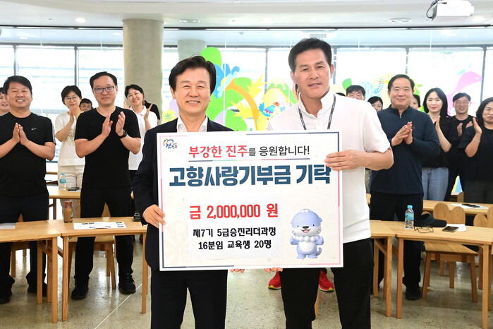 조규일 진주시장은 “교육생들이 진주를 직접 경험한 후에 한마음으로 보내준 뜻깊은 기부에 감사드린다”며 “마음을 담아 보내주신 기부금은 지역사회 발전을 위한 사업에 소중히 사용하겠다”고 답했다.