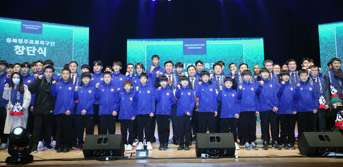 이날 창단식에서 충북청주FC는 새로운 구단 앰블럼과 유니폼을 공개하고, 최윤겸 초대 감독 및 선수단 소개와 구단기 전달식을 가졌다.