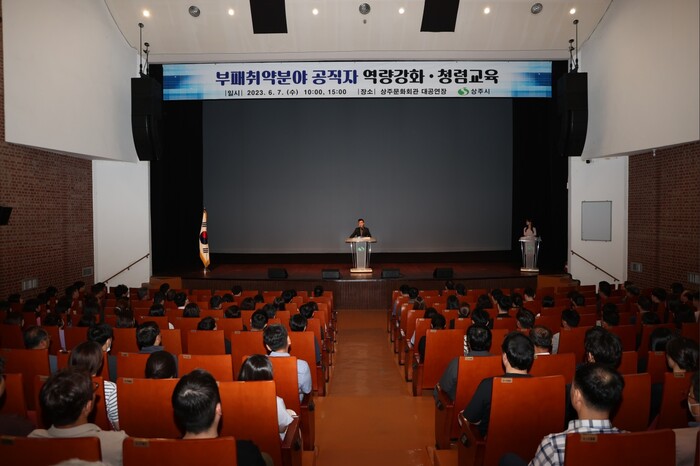[상주=박병상 기자] 경북 상주시는 지난 7일 상주문화회관에서 소속 직원을 대상으로 조직 내 청렴 문화 확산을 위한 "부패 취약 분야 공직자 역량 강화·청렴 교육"을 실시했다.