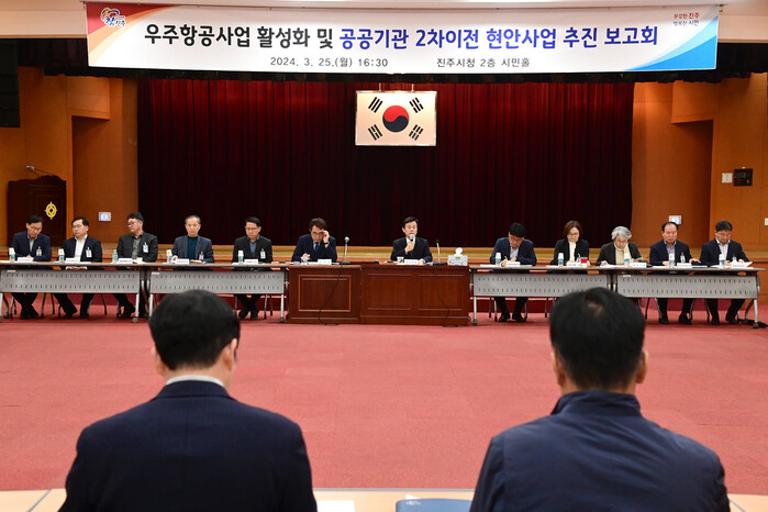 진주시는 지난 25일 시청 2층 시민홀에서 우주항공사업 활성화 및 공공기관 2차 이전 대비 부서별 추진사업에 대한 업무보고회를 개최하였다.
