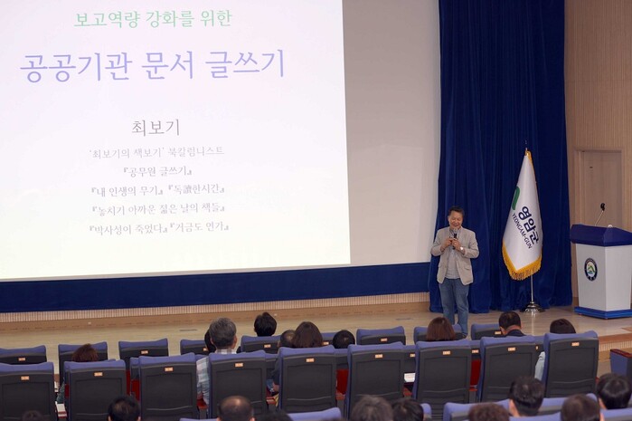 [영암=정찬남 기자] 전남 영암군(군수 우승희)이 지난 14일 군청에서 최보기 작가를 초청해 ‘보고역량 강화를 위한 공무원 문서 작성’ 특강을 실시했다.