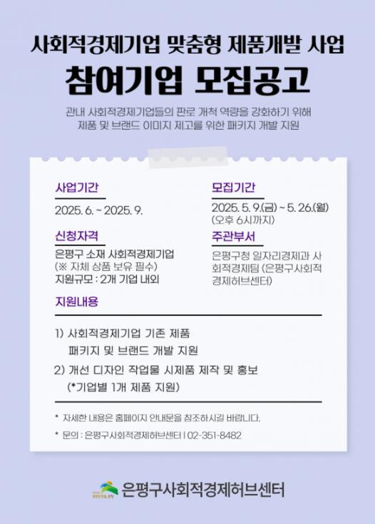 김미경 은평구청장은 “이번 사업이 지역사회와 상생하는 사회적경제기업의 브랜드 가치를 높이고, 판로 확대의 전환점이 되길 바란다”고 말했다.