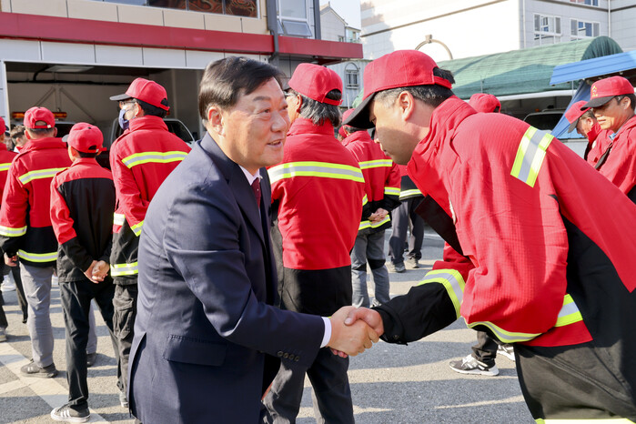이날 김 군수는 한 분 한 분 악수하며 건강과 안부를 묻고 애로사항 등을 청취했다.