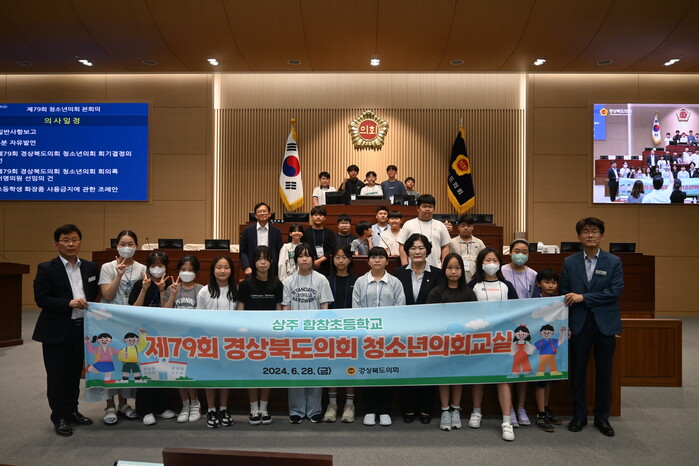 [안동=박병상 기자] 경상북도의회(의장 배한철)는 6월 28일 경상북도의회 본회의장에서 상주 함창초등학교 6학년 학생 30여명과 지도교사가 참여한 가운데 제79회 경상북도의회 청소년의회교실을 개최하였다.