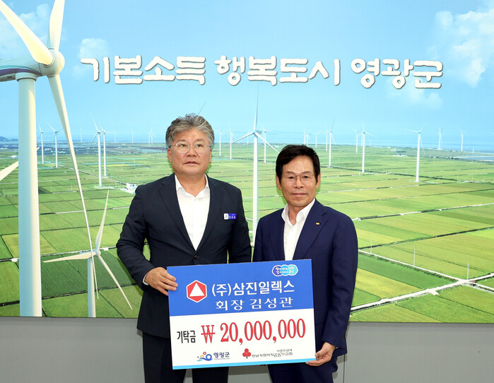 [영광=장수영 기자] 김성관 ㈜삼진일렉스 회장이 최근 위기가정 지원과 지역사회 회복을 위한 성금 2000만원을 전남 영광군에 전달했다.