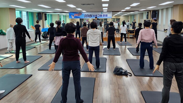 프로그램은 탄력밴드ㆍ스텝박스 등 소도구를 이용한 근력운동과 웜업 유산소 운동으로 근력인 떨어지는 시기인 중장년층 맞춤형 신체활동으로 구성됐다.