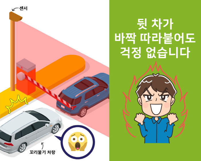 주차 차단기 앞 바닥면에 설치된 루프코일의 감지 범위가 넓고, 이로인해 앞 차량에 바짝 붙어 주행하게 되면 루프코일은 두대의 차량을 한 대로 인식하여, 꼬리물기 차량은 요금을 지불하지 않고 그대로 차단기를 통과할 수 있게 된다.