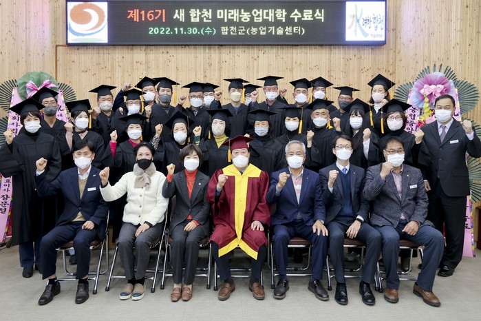 ‘제16기 새 합천 미래농업대학’은 연간 52회, 208시간 교육으로 46명의 새로운 농업 인재를 양성했다. 2007년부터 올해까지 1,083명의 수료생을 배출해 지역 내 선도 농업인 배출의 산실로 자리매김하고 있다.