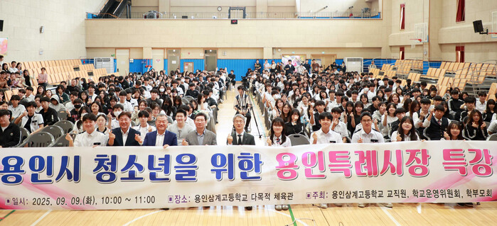 이날 강의엔 용인삼계고 2~3학년 학생 500여 명과 학부모 40여 명이 참석했으며, 1학년 학생들은 각 교실에서 방송으로 강연을 시청했다.