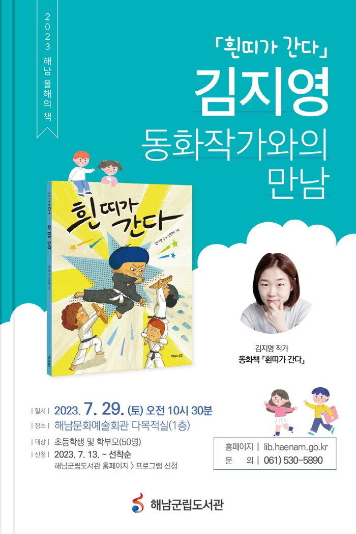 김지영 작가는 ‘흰띠가 간다’ 외에도 ‘쥐포스타일’, ‘마음소화제 뻥뻥수’ 등 다수의 동화를 집필한 인기작가로, 제3회 비룡소 스토리킹을 수상하기도 했다.