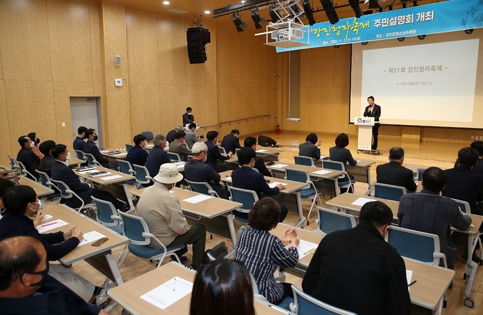 이에 따라 강진군은 축제에 대한 주민의 이해와 참여도를 높이기 위한 축제 개최 시기와 프로그램 등에 대한 설문을 받기 위해 지난 2일 강진군청소년수련관에서 군의원, 축제추진위원, 읍면 기관단체장, 개인요업체, 군민, 공무원 등 120여 명이 참석한 가운데 2003, 제51회 강진청자축제 개최 주민설명회를 개최했다.